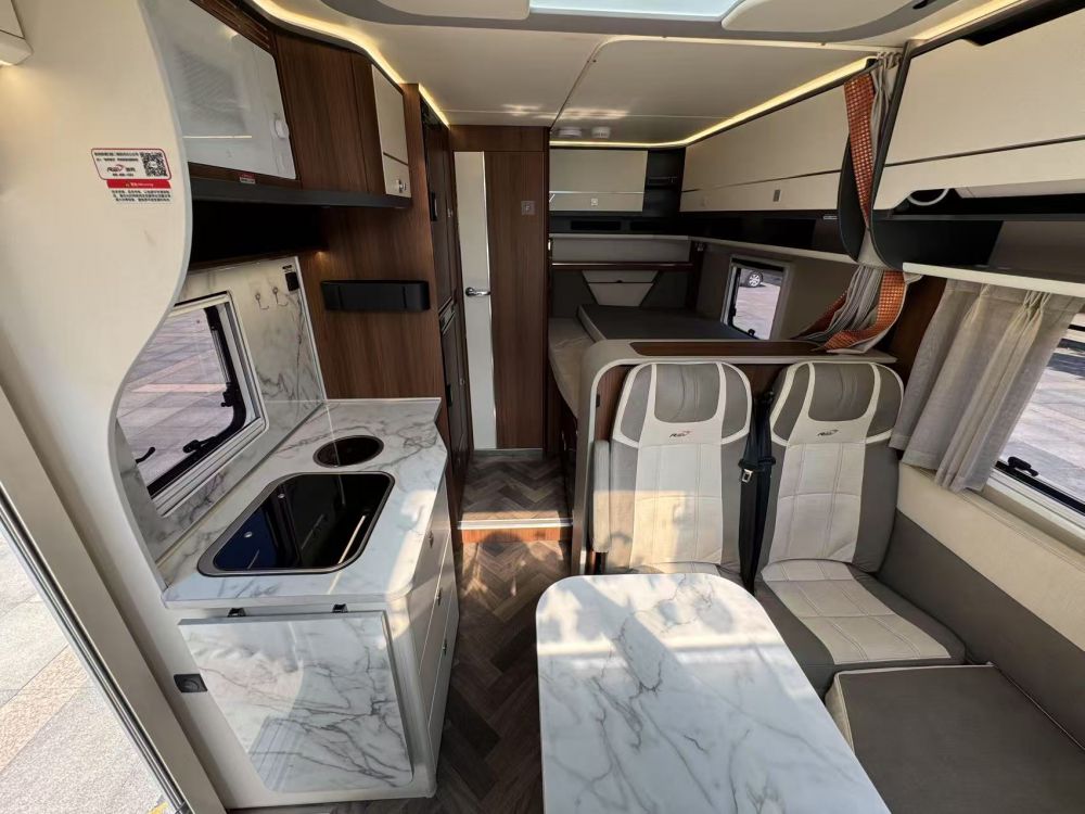 车况描述:新到店瑞弗T800 T型房车 上牌日期:2024年3月 车辆车型:依维柯欧胜 车辆颜色:白色 核载人数:5人 排气量:3.0T 8AT自动挡 表显里程:3.4万公里 燃料:柴油 F1C发动机 车长宽高:5990*2490*2965 使用性质:非营运 排放标准:国六 车辆说明:主副驾悬浮座椅,副驾驶可旋转,行车双发电机。带有伟巴斯特驻车燃油加热暖风一体机。 水电配置:此车带有12度电 ,200W太阳能,3000W逆变器。200L清水箱,50L灰水箱,18L黑水箱。 家电配置:车内带有美的家用空调 ,24寸智能网络电视,蓝牙音响,额头大天窗。双向换气扇,莫博洗衣机。 厨房带有米家微波炉+电磁炉+不锈钢洗菜池,152L双开门冰箱。 卫生间配置:赛特福德抽拉马桶+卫生间换气扇,淋浴花洒,美妆镜,毛巾架,储物柜,洗脸池。 户外配置:户外带有户外电动遮阳篷,户外翻折桌板,外置取水口/插座,电动踏板,还带有驻车支腿,防蚊纱窗。 车况精品,欢迎咨询!