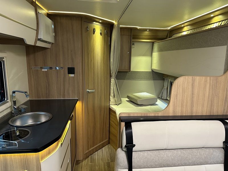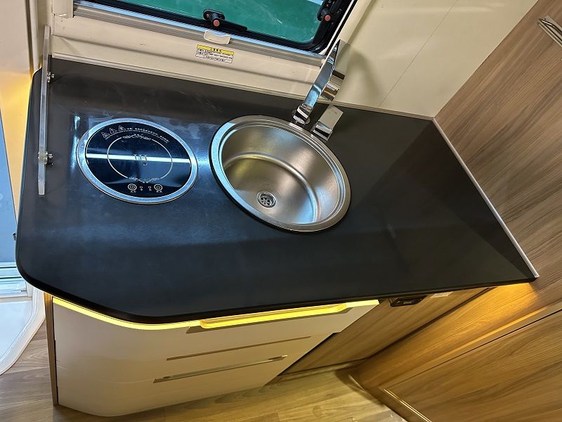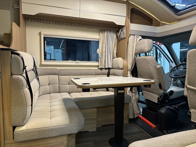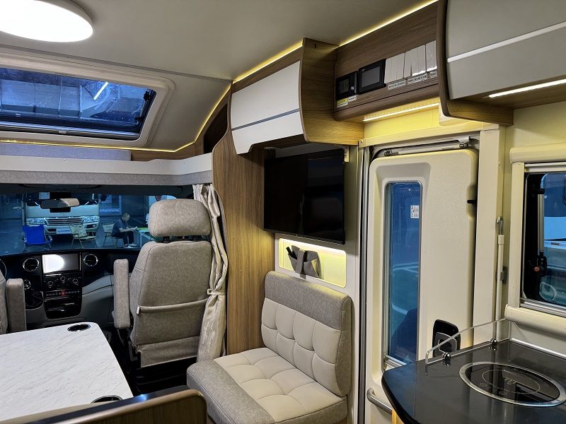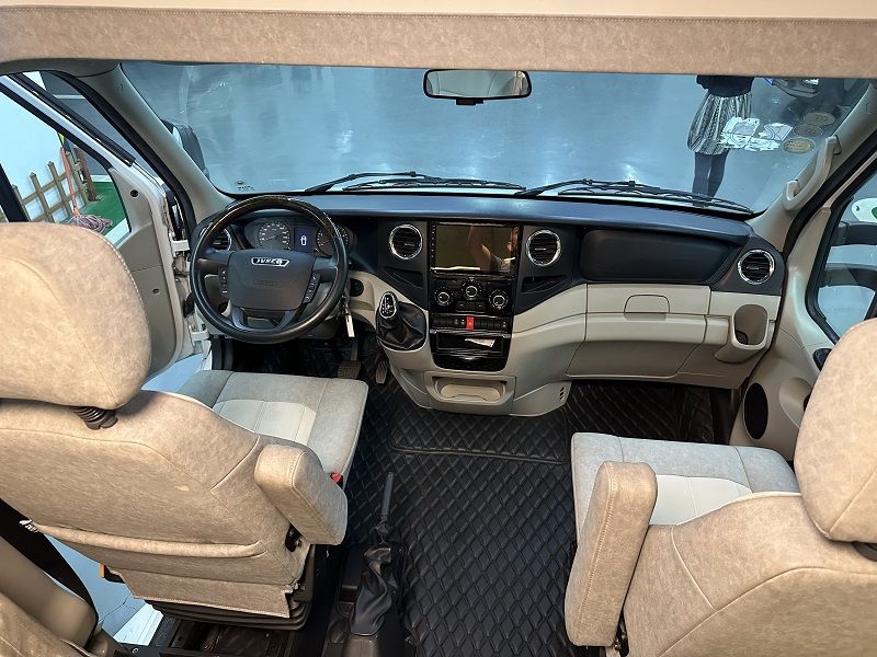 车况描述:新到金冠依维柯小额头T型房车 上牌日期:2023 年 3 月 车辆车型:金冠宾歌cx500 荷载人数:6人 驾驶要求:C1C2 车辆颜色:白色 排 气 量:3.0T 表显里程:4.6万公里 燃 料: 柴油 使用性质:非营运 排放标准:国六 车长宽高:5980x2450×3000mm 车况说明:,配有820AH锂电池,3000W逆变器。带有多美达进口顶置空调,带有柴暖,带有小米电视。厨房带有洗菜池+电磁炉+微波炉。带有英德尔冰箱,卫生间带有马桶+淋浴花洒+洗手池+洗漱镜+通风窗户+双向换气扇配备齐全。户外带有多美达外置遮阳棚,220净水箱,80灰水箱,20黑水箱,电动踏板步,车况极新,欢迎咨询!